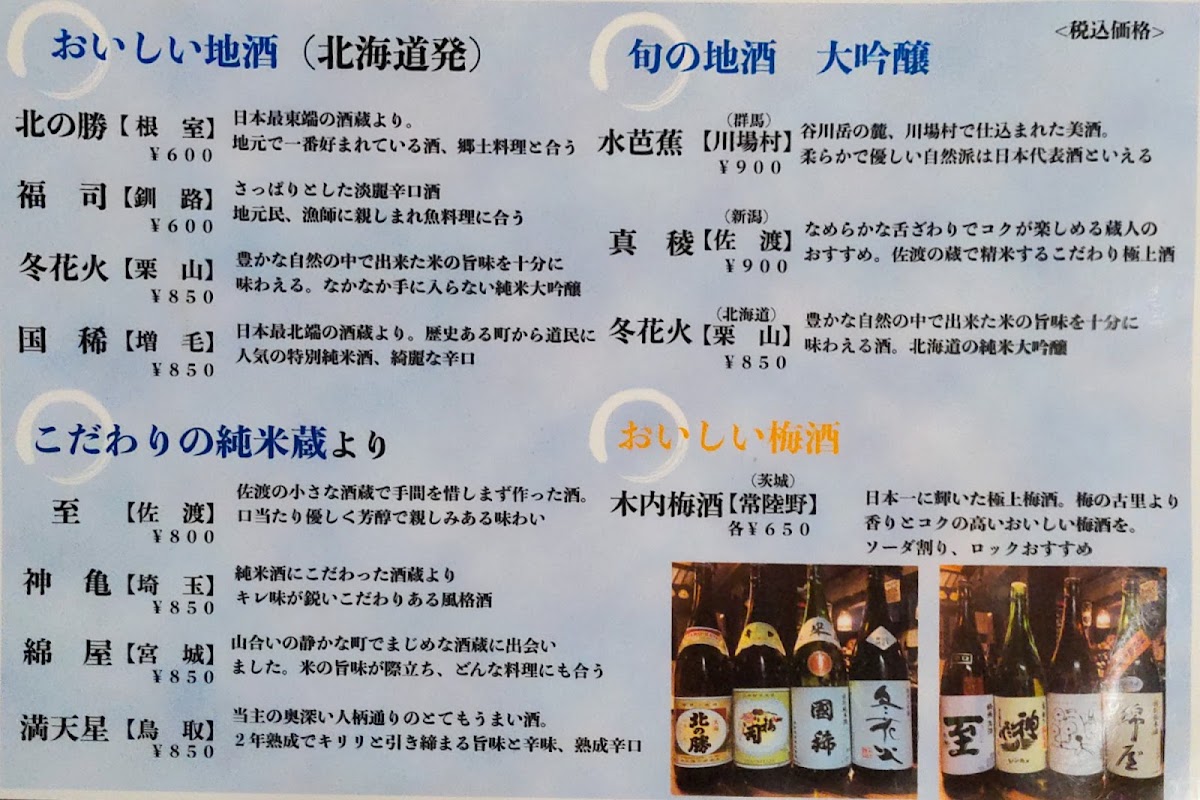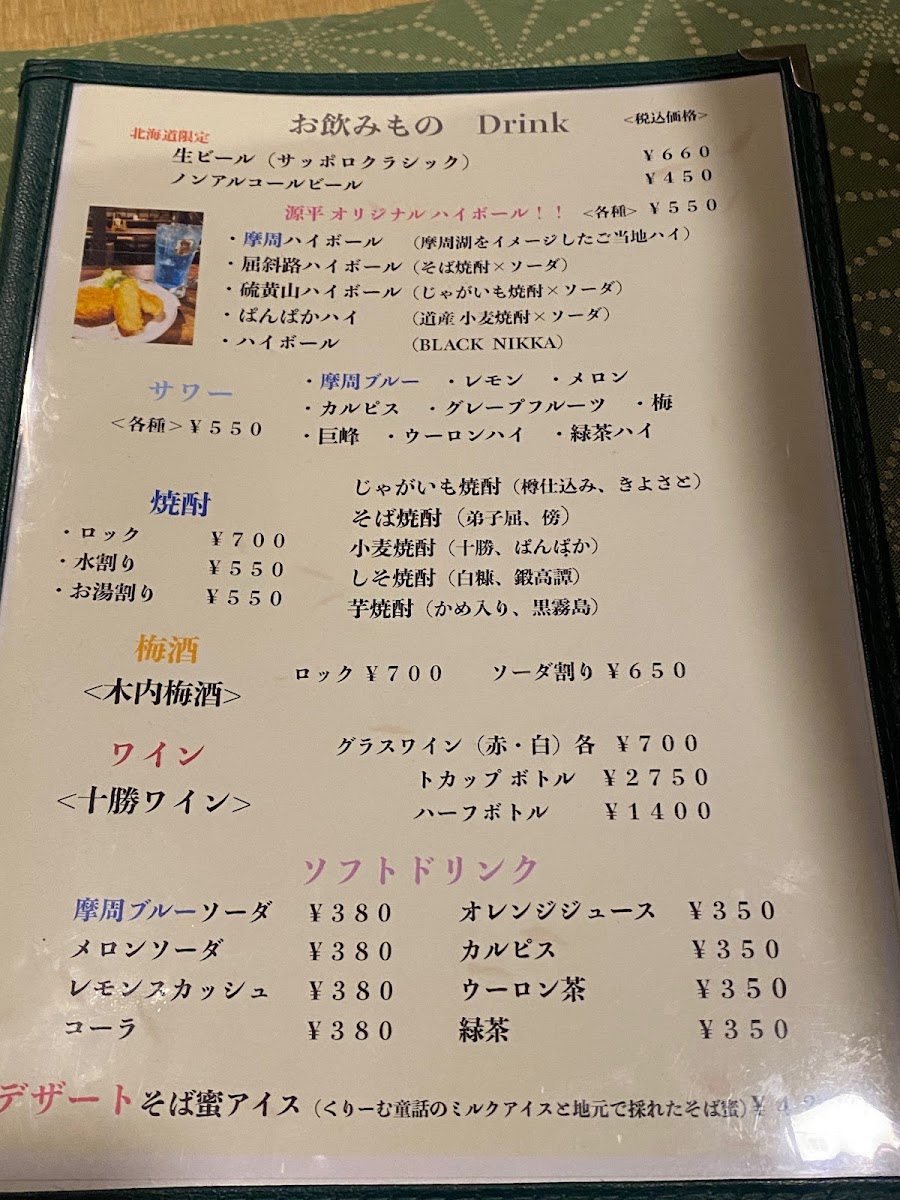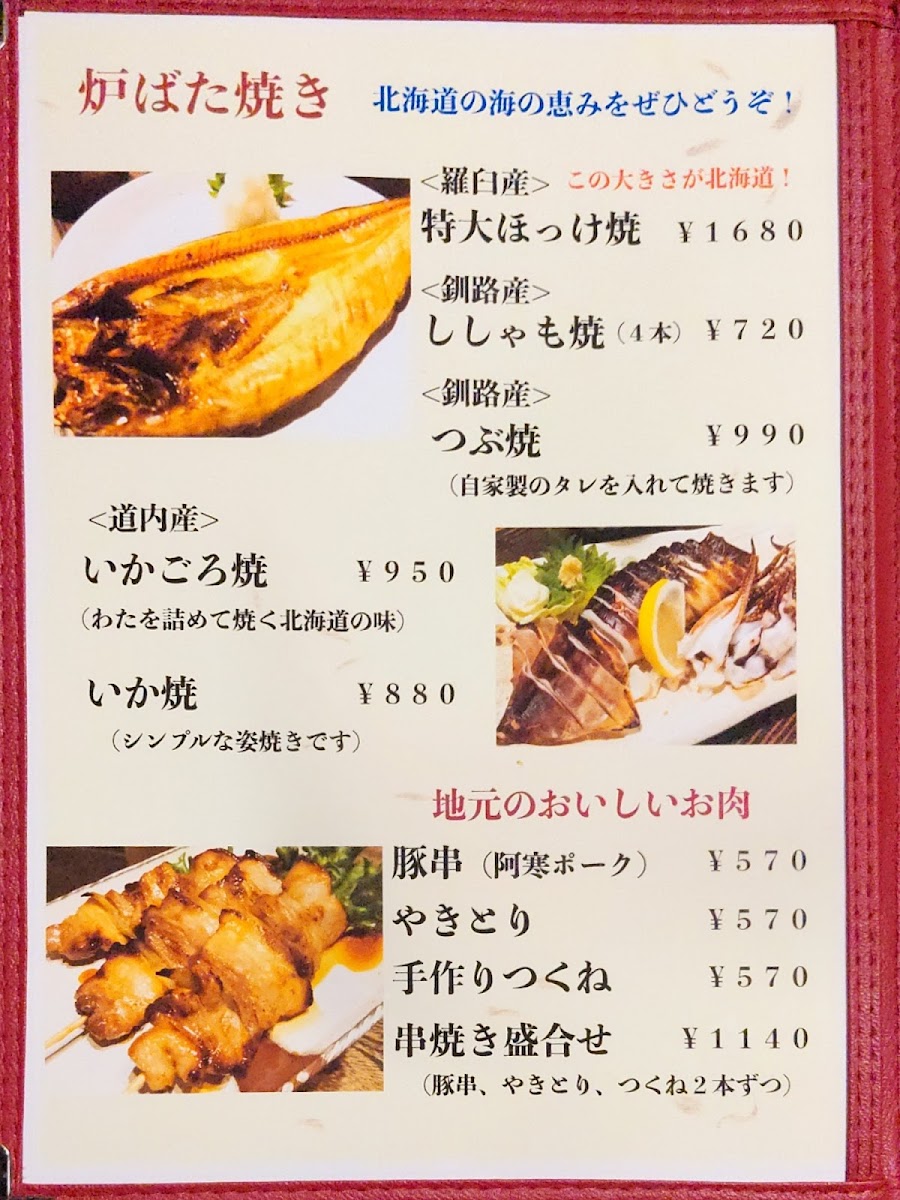 Inaka-Ya Genpei offers a delightful and diverse dinner menu, with dishes that reflect the region’s unique flavors. Start your meal with the Genkoro (2 pcs), a savory appetizer priced at ¥xxx, or indulge in the rich, buttery taste of Shiitake Butter, featuring perfectly sautéed shiitake mushrooms. For a more adventurous option, the Tsubu Yaki (Grilled Whelk Shell) is a must-try, offering a tender yet flavorful experience. When it comes to main dishes, the Sho Funka Ramen (Small Eruption Ramen Noodle) brings a spicy, bold twist, perfect for ramen lovers. To complement the meal, enjoy a refreshing Mashu Highball (Mashu Whisky and Soda), which pairs wonderfully with the dishes. Whether you're craving something light or a heartier meal, Inaka-Ya Genpei’s menu delivers an array of options that cater to various tastes and preferences.